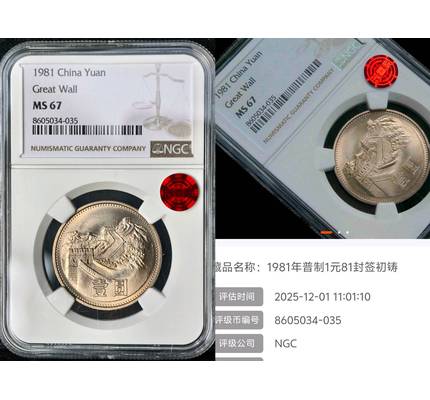 拍品說明: 1981年長城一元81封簽初鑄67分,薦藏銅標(biāo),原卷拆無養(yǎng)護(hù)送評。底板絲綢順滑,淡黃油包漿,質(zhì)感強(qiáng)烈,光澤明亮,視覺舒適,狀態(tài)特別漂亮!長城面上方有一處線頭痕,趣味幣?。o薦藏保護(hù)殼)12/01薦藏剛貼上的銅標(biāo),新鮮熱乎!請各位朋友仔細(xì)看下運(yùn)費(fèi)規(guī)則:1.默認(rèn)付18元發(fā)順豐陸運(yùn),送500元保價(jià)2.付10元發(fā)申通快遞,運(yùn)輸速度會(huì)慢一點(diǎn)3.順豐到付:陸運(yùn)不保價(jià),首重18元起————————————————————————————————————————————————①【圖片】自然光實(shí)拍,不藏著掖著,該啥樣就啥樣。②【狀態(tài)】養(yǎng)護(hù)/包漿等自行分辨,圖片很清楚,以免糾紛。③【出價(jià)】都是成年人別玩懊悔那一套,新人也不例外。④【付款】盡量微信,支付寶請附上說明,隔天發(fā)貨。⑤【快遞】河北發(fā)貨,順豐18,申通10,偏遠(yuǎn)/超重另算。⑥【售后】分原因,好說好商量,無理取鬧的只能網(wǎng)站介入。⑦【代理】11M/碧海/薦藏/NGC/PMG/PCGS/美評。⑧【送拍】微信13021420126?!? ...詳細(xì)