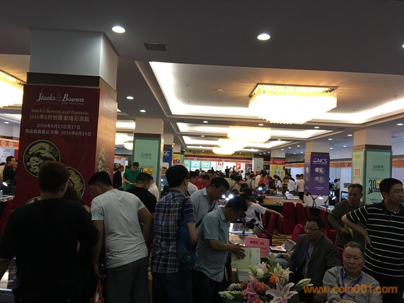 北京時間5月19日,由中國收藏家協會主辦,廣銀閣、首席收藏、華夏古泉、東鳴軒等聯合承辦的2016中國國際錢幣(北京)展銷會,于5月19日在京都信苑飯店3層會展中心隆重開幕。 上午9:00幣展開門正式對公眾開放,本次展銷會,吸引了包含評級公司、拍賣公司、知名幣商、錢幣相關企業等展商的參加。藏品領域涵蓋包括古錢、金銀錠、機制金銀幣、機制銅幣、現代紀念幣、外國錢幣、紀念章等7