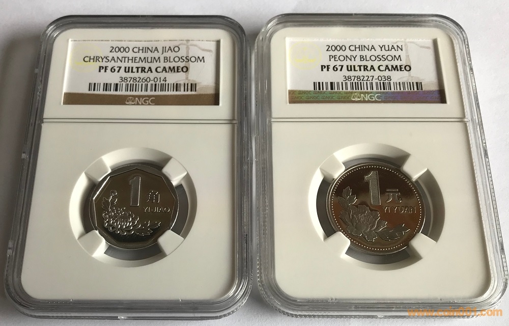 兩千年 老標 精制雙花 一元和一角!多年的藏品,狀態十分好,都是老標 PF67分的,不差于新標68分!