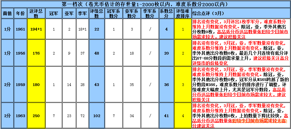 第一檔次的存世量范圍進行了調整,從1-1000枚改為1-2000