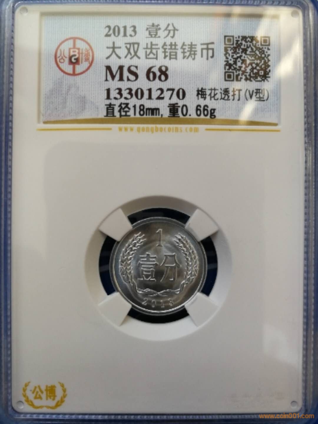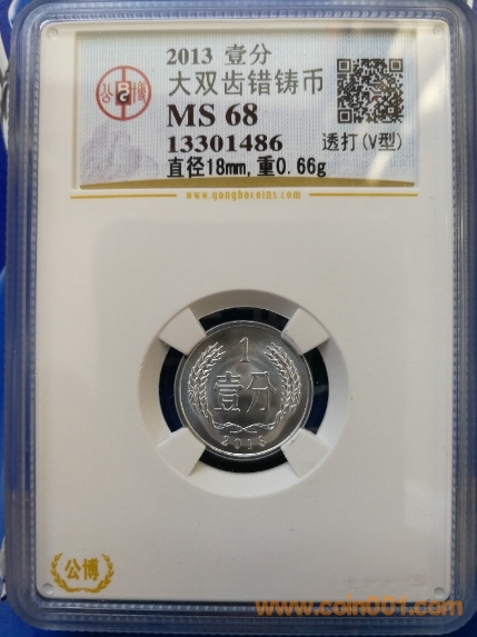 2013年的壹分硬幣,131公博評級錯鑄幣,因為【大雙齒】的出現,在收藏屆引起了轟動,一舉成名,名聲大震。131大雙齒錯鑄幣是中國硬幣鑄造史上的奇葩!是60年鑄幣以來第一次出現近50%的錢幣邊齒“一分為二”“一眼清”錯幣,也是唯一僅有的一次這樣錯幣。