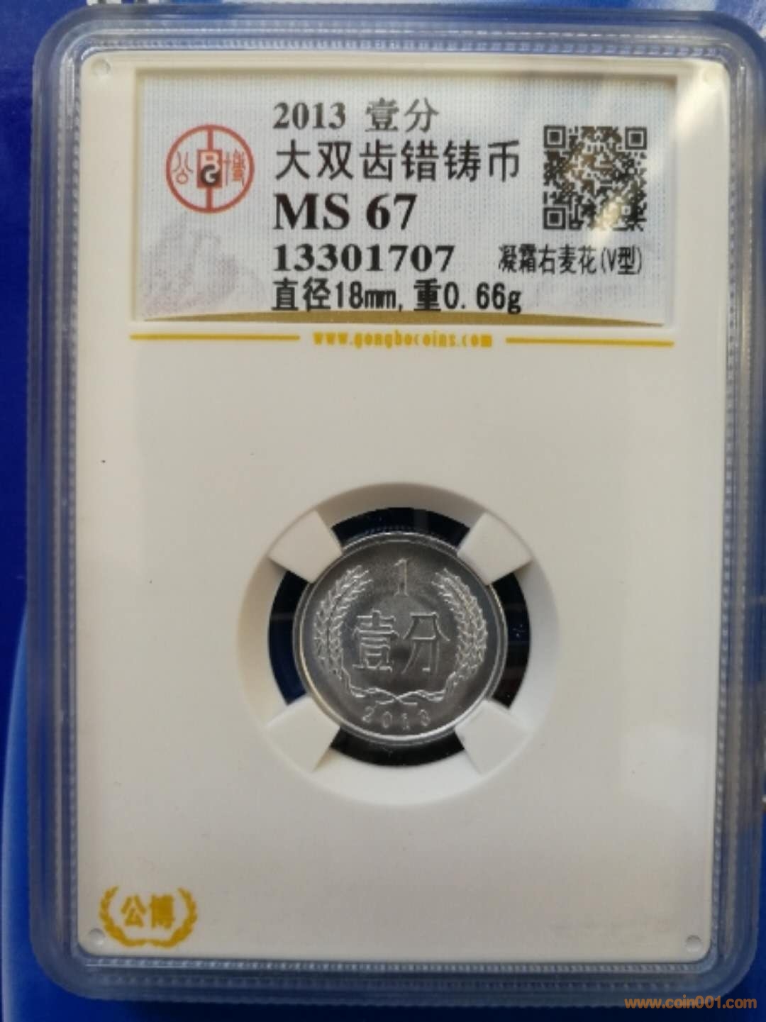 神奇的2013年壹分 131大雙齒錯鑄幣 GBCA 國評公博評級錯鑄幣
