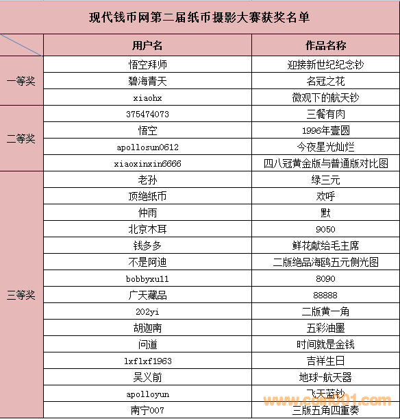 現代錢幣網第二屆紙幣攝影大賽——獲獎名單公布