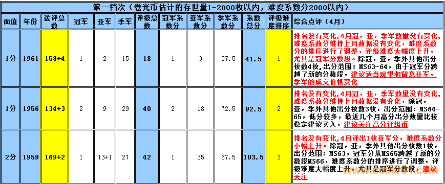 第一檔次的存世量范圍進(jìn)行了調(diào)整,從1-1000枚改為1-2000