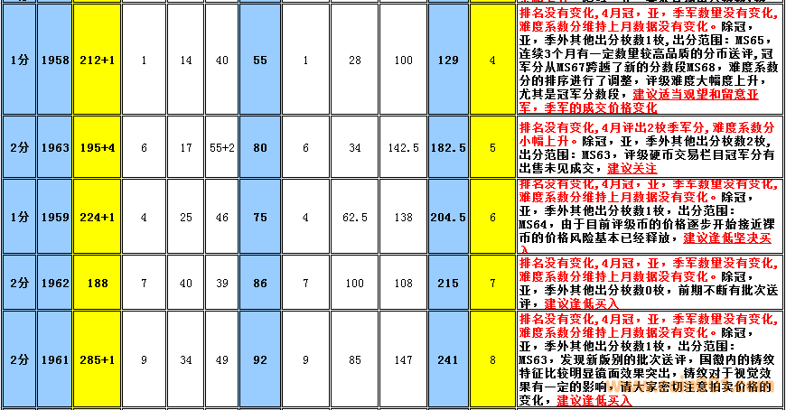 難度系數(shù)是動(dòng)態(tài)的,評(píng)級(jí)量上升不管他是冠軍還是亞軍難度系數(shù)的分?jǐn)?shù)一定會(huì)提高,總量上升是必然的,關(guān)鍵是看各個(gè)分?jǐn)?shù)段有沒(méi)有上升(尤其是高分段)有時(shí)低分多不一定是壞事反而能襯托高分的稀缺性。如果某些品種的評(píng)級(jí)已經(jīng)接近飽和那他的難度系數(shù)分?jǐn)?shù)就不會(huì)上升隨著時(shí)間的推移他的價(jià)值同樣能體現(xiàn)出來(lái)!如果現(xiàn)在價(jià)格合適的話對(duì)于您來(lái)說(shuō)的那個(gè)品種也許是最佳的買入時(shí)機(jī)。