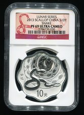 2013年癸巳生肖1盎司梅花形精制銀幣一枚(原盒、帶證書、NGC PF69)