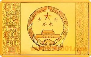 (九)155.52克(5盎司)長方形金質(zhì)紀念幣為精制幣,含純金155.52克(5盎司),規(guī)格64毫米×40毫米,面額2000元,成色99.9%,最大發(fā)行量2000枚。