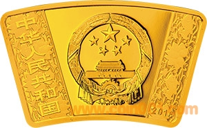 (五)10.368克(1/3盎司)扇形金質(zhì)紀念幣為精制幣,含純金10.368克(1/3盎司),外圓半徑51毫米,內(nèi)圓半徑36毫米,圓心角30度,面額150元,成色99.9%,最大發(fā)行量30000枚。