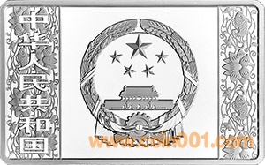 (十)155.52克(5盎司)長方形銀質(zhì)紀念幣為精制幣,含純銀155.52克(5盎司),規(guī)格80毫米×50毫米,面額50元,成色99.9%,最大發(fā)行量20000枚。