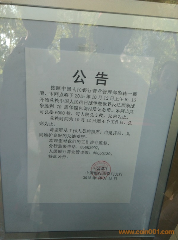 年10月12日,是全國兌換抗戰紀念幣的第一天,這點和往年有所不同,往年是今天是兌換紀念幣的日子,而這次是第一天,