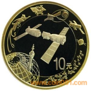 中國航天普通紀念幣面額為10元,直徑為27毫米,材質為雙色銅合金,發行數量為1億枚。