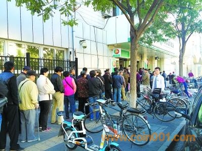 “這個月的國債不是已經賣完了么,怎么銀行門口又排大隊?”今早7時至9時,不少市民發現今天銀行門前隊伍的長度比國債銷售日還要長。早上7點半,記者來到工商銀行右內大街支行,看到門前已經排了近百人。銀行保安在隊尾維持秩序。隊伍中大部分是老年人,有的牽著狗,有的拎著菜,還有的推著小孩。而在路口東南角的農業銀行里仁街支行以及路口西北角的北京銀行右安門支行門前,等待兌換紀念幣的人們也排了上百米的長隊。