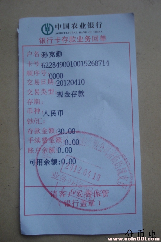 轉款30元到孫老師農行帳戶,請盡快幫忙充值現代幣,謝謝