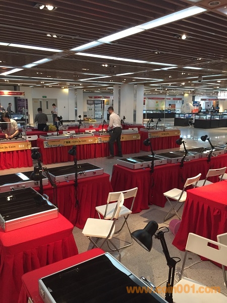 這次展會很像香港錢幣展,除了周邊大的參展商外,每個參展商都是這樣的鋁合金展柜,這樣