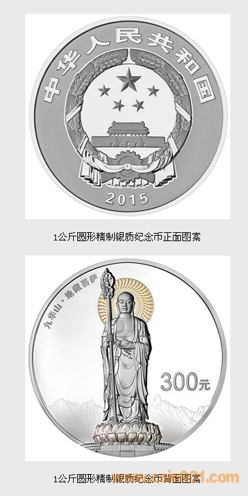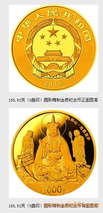 中國人民銀行定于2015年4月28日發行中國佛教圣地(九華山)金銀紀念幣一套。該套紀念幣共5枚,其中金幣3枚,銀幣2枚,均為中華人民共和國法定貨幣。