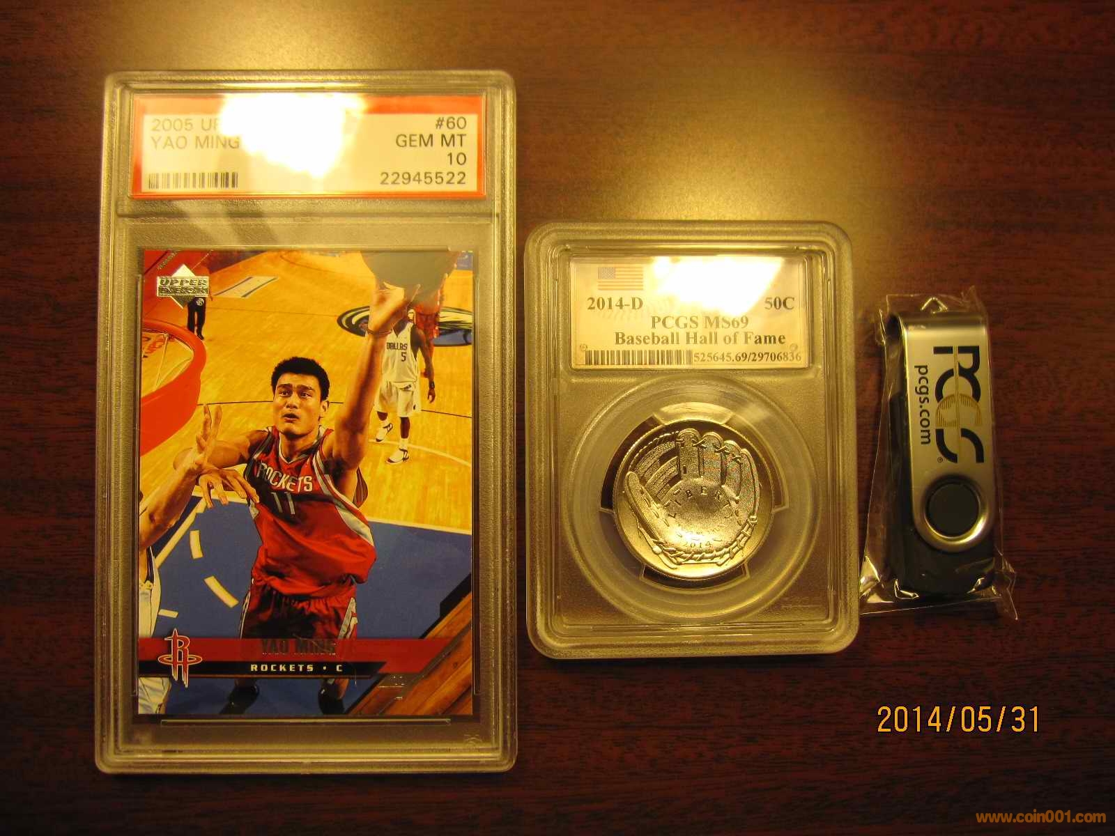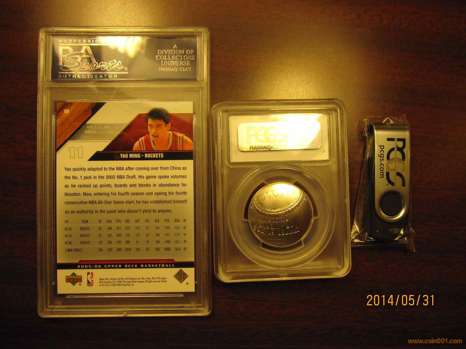 來到美國的第一天,PCGS的創始人David就送上了一個大禮包,里面有很多必須的資料、攻略、防賽霜、U盤等。其中還有美國2014年鑄造的棒球手套鎳幣和姚明體育明星卡。這兩個東西,今年在美國賣的十分火爆,見圖1,2 。這是來到加州的第一個小收獲了。