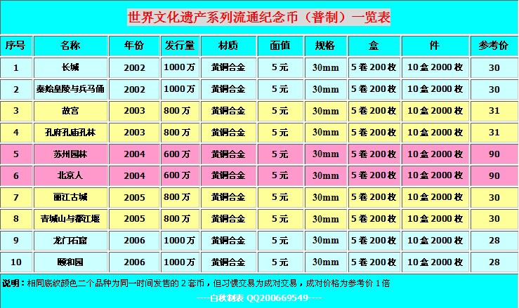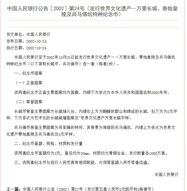 從發(fā)行部門的權(quán)威公告來看,目前俗稱的“遺產(chǎn)一組”,實際上是《萬里長城》、《秦始皇陵與兵馬俑坑》二套幣,是一枚一套的幣,只不過因為同時發(fā)行、大題材都是世界文化遺產(chǎn),最重要的是這么多年一直沒有步入過快速增值通道、市價偏低,所以,習(xí)慣捆綁式成對交易,也就稱之為“遺產(chǎn)第1-5組”。換句話來說,買一組遺產(chǎn)幣,實際上就是買了二套幣。