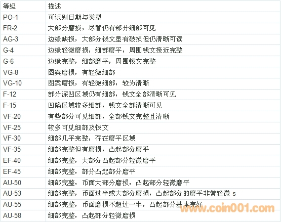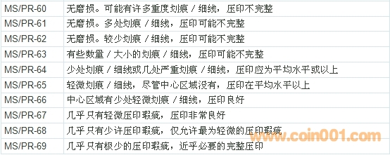 為了更好的討論標準的定義,這里我選用的是PCGS普制幣的評分標準