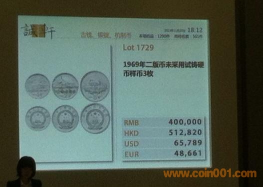 今日下午四時,到達北京昆侖飯店誠軒拍賣公司的現場,一進門,機制幣部分正在進行,人比較多,拍賣現場的座位已經不夠,很多人三三兩兩的在外面閑聊。跟幾位相識的朋友了解,本次機制幣部分相對比較平穩,價格屬于中部偏低的狀態。 預展處,人員較多,本次預展相對前2年的拍賣,預展座位較少,到現場時,已無多余的座位,等待了一段時間。看了幾個我個人比較關注的普制紀念幣樣幣拍品,品相還是不錯的,跟老孫同志一商量,基本都有心理的價位,覺得可以在拍賣會上小小撿漏一把。 傍晚5點40分,現代幣部分拍賣開始,第一項拍品是老西藏樣幣兩枚,品相上佳,還未等我出價,拍賣價格已超過我心里預期,最終成交價為2萬,加上傭金近23000。參拍人員眾多,心里倍感不妙,看來本次無漏可撿,只能主攻心意拍品。 1991年老三樣樣幣,預展中我特意關注,品相很好,氧化均勻。心理價位是1萬元,最終1.2萬落錘,加上傭金1.3萬以上。后續陸陸續續十幾個拍品都遠遠超出我們心里預期價位,呵呵,看來流通幣市場認同度還是很高,大家都價格也比較清楚,無漏可撿。 本次現代錢幣部分壓軸拍賣, 是一套1969年上呈硬分幣樣幣,此套幣同一圖案在2012年已經上拍過,最終以40萬落錘。 最后,精致賀歲羊一包流拍,精制賀歲猴、雞、狗各五十套 ,以9萬元的落錘價成交,加上傭金10萬元以上。 [ 此帖被仲雨在2013-11-20 23:10重新編輯 ]