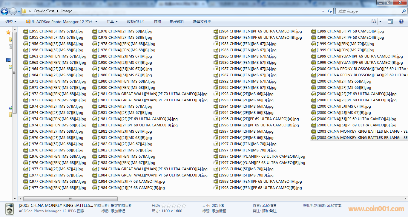 于是找小弟寫了個程序,data.txt中給出串號(每一個一行),雙擊exe文件,串號對應的NGC官方照片就下載到image文件夾里了,照片以錢幣的名稱和分數命名。