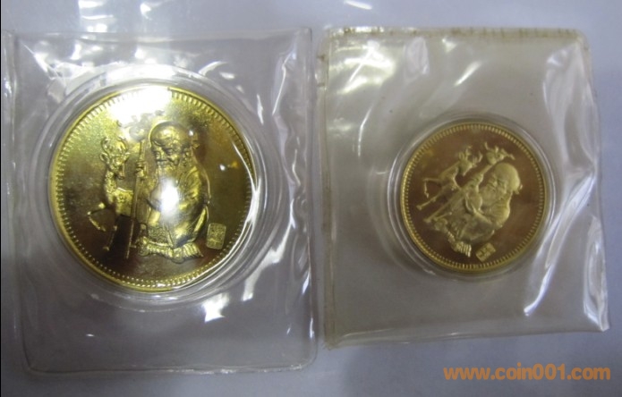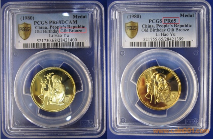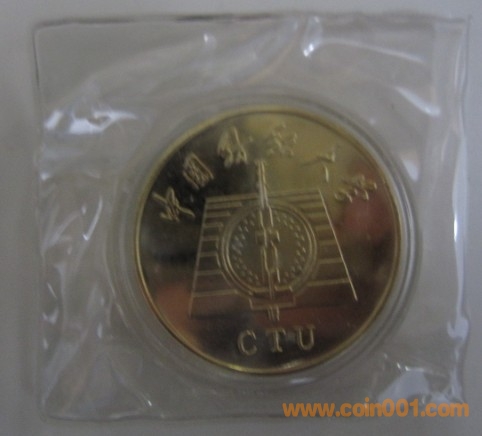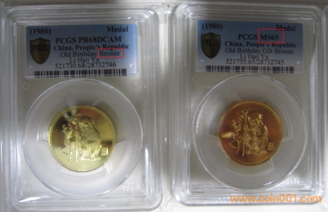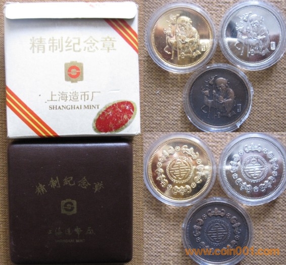 2.陳堅老師的老壽星是十分經典的80年代的作品,80年代造了27MM和36MM兩種規格的本銅章,見圖1。后來上幣二分廠在90年代將36MM尺寸的造了鍍金,鍍銀,紫銅的三色章,見圖2。但是27MM的老鍍金的壽星一直沒有發現有鍍金章,我這枚目前是僅見品。其實上幣在80年代也做鍍金章,只是做的很少。當時鍍金章成本高,鍍金章的規格高于本銅章,比如十分著名的紡織大學紀念章就是鍍金的,見圖3,不能一概而論鍍金就是后期的。現在也有人后鍍,但是還是會有明顯的區別。此枚27mm的老壽星正是80年代的作品,不是90年代的再版。由于章上沒有年號,雖然我拿出資料給PCGS的人證明,老壽星是80年造的,但是PCGS還是很謹慎,在1980年號上打上的括號--(1980),這個說明這個時間也只是參考。