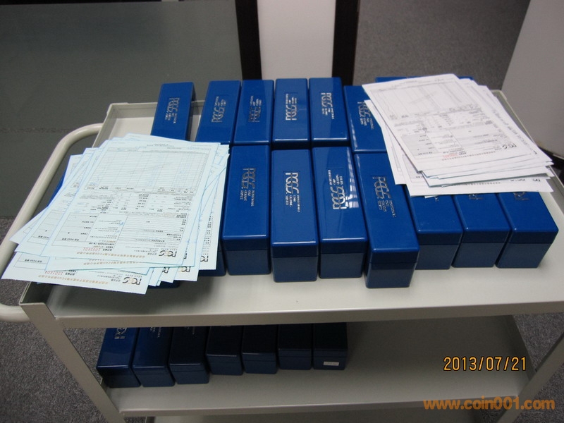 PCGS中國大陸首行共評(píng)了14000多枚幣(非官方但可靠數(shù)據(jù)),其中流通紀(jì)念幣大約4%(官方數(shù)據(jù)),算下來基本都是老孫送的500多枚大全套。