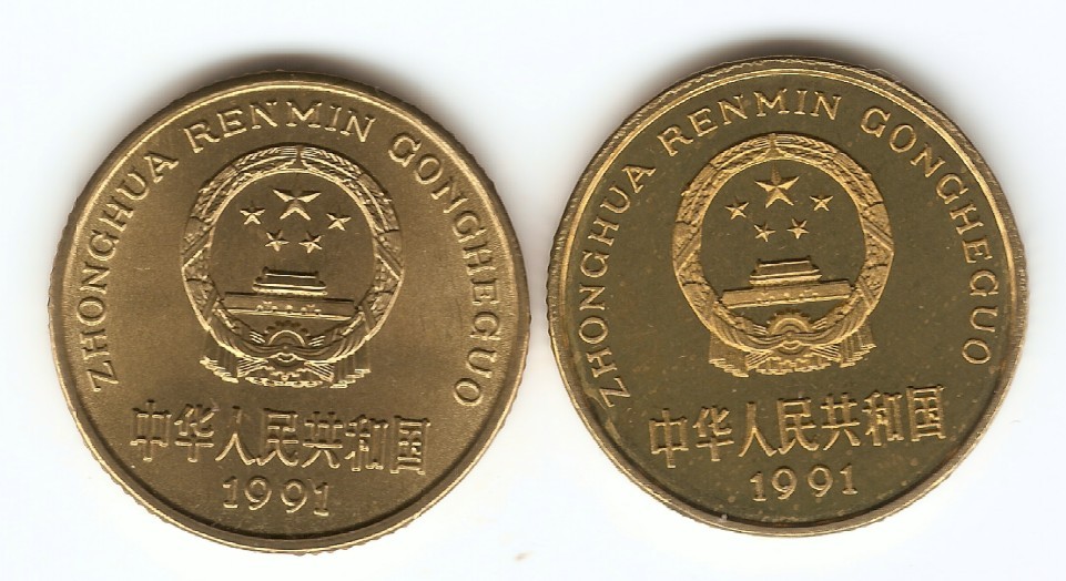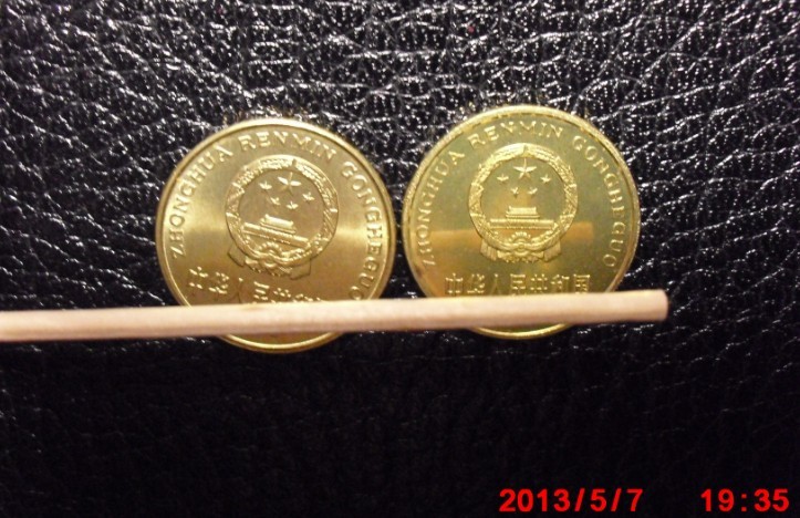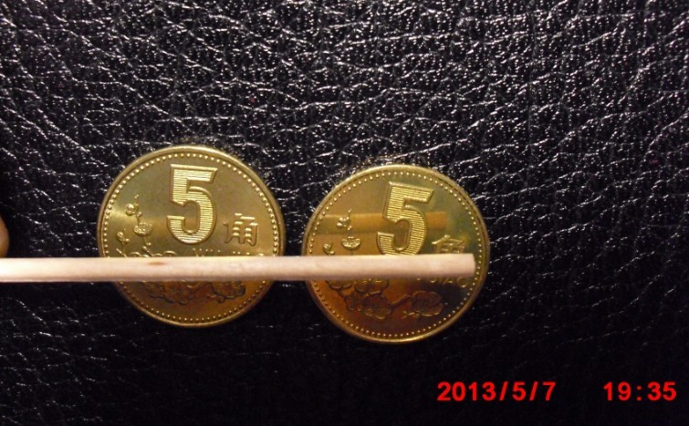 有一個(gè)問(wèn)題我觀察了很久,對(duì)人民銀行發(fā)行91年套裝流通硬幣,由于有網(wǎng)友組裝套幣的出現(xiàn),收藏價(jià)值一直有較少人發(fā)現(xiàn),收藏價(jià)格也沒(méi)有得到充分的體現(xiàn),通過(guò)筆者觀察,究其原因,是大家無(wú)法去區(qū)別這兩種套幣的區(qū)別,最近幾日,我試著開(kāi)始研究這2種幣的差別,通過(guò)比對(duì),我們首先對(duì)梅花五角,進(jìn)行圖片比較,為了的到直觀效果,我用掃描儀和相機(jī)對(duì)2枚幣進(jìn)行圖片比對(duì),效果如下圖: (1)掃描儀5角正面圖片(左為網(wǎng)友裝普制,右為人民銀行裝半精制) ![]() |