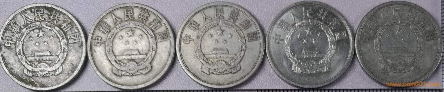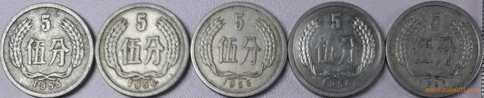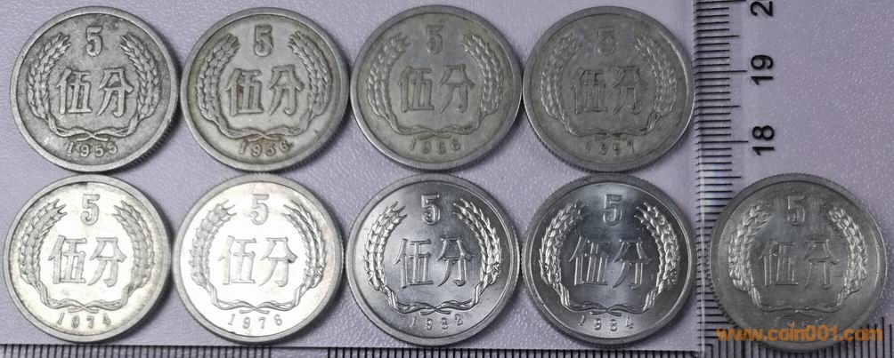 小星版5分硬幣1955年、1956年(銅鋁)、1956年(鋁鎂)、1957年;大星版5分硬幣1956年(鋁鎂)的設計和原模或二原模的提供者是沈陽造幣廠,生產制造的是上海造幣廠。