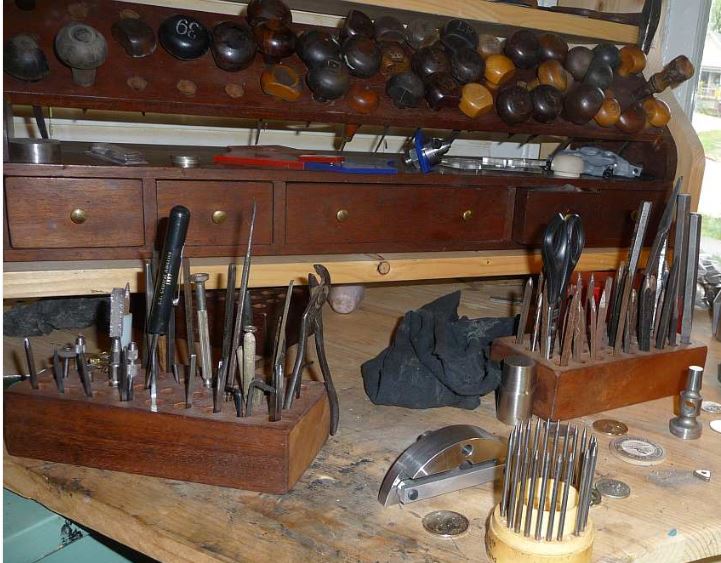當時雕模師(古羅馬的雕模師稱為celator)是直接在金屬上雕鑿的,所用的工具無非是各種粗細和形狀的普通鑿子,再加上錘子。那時候還沒有壓機,因此造幣時是把加熱后的坯餅放在上下模之間,然后用大榔頭猛敲上模,把幣模上的圖紋壓印到坯餅上。