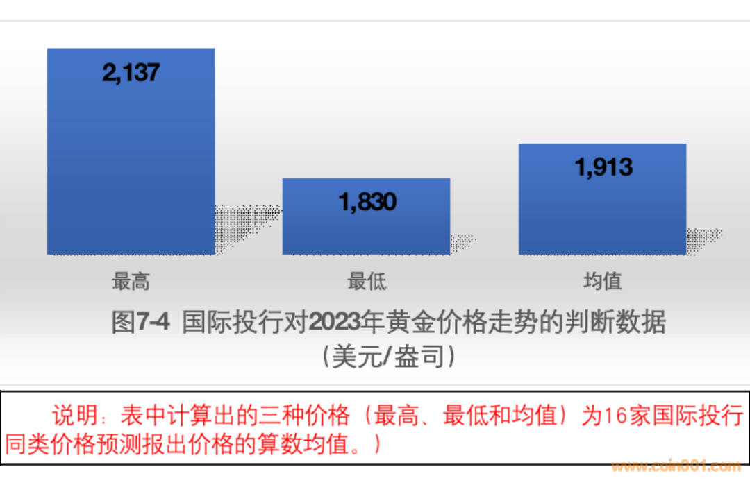 根據對16家國際投行的調查,他們對2023年黃金價格走勢的預判見圖7-4。