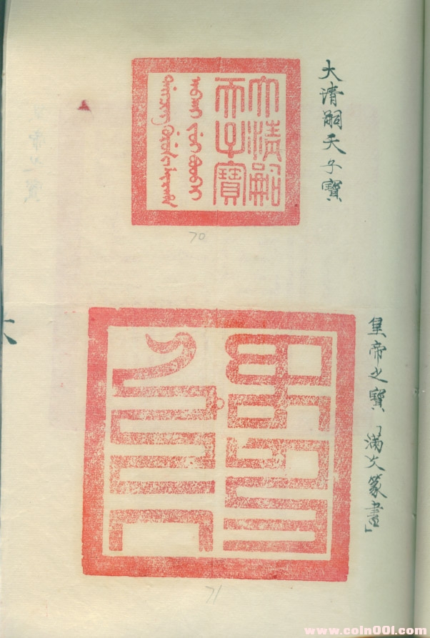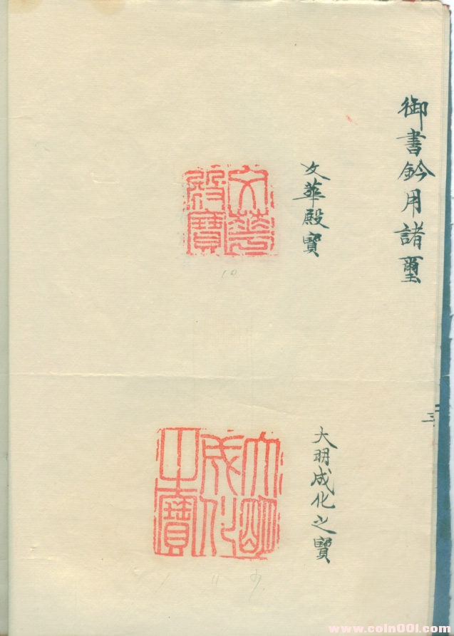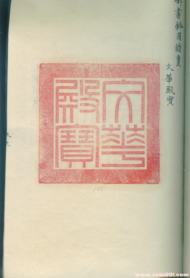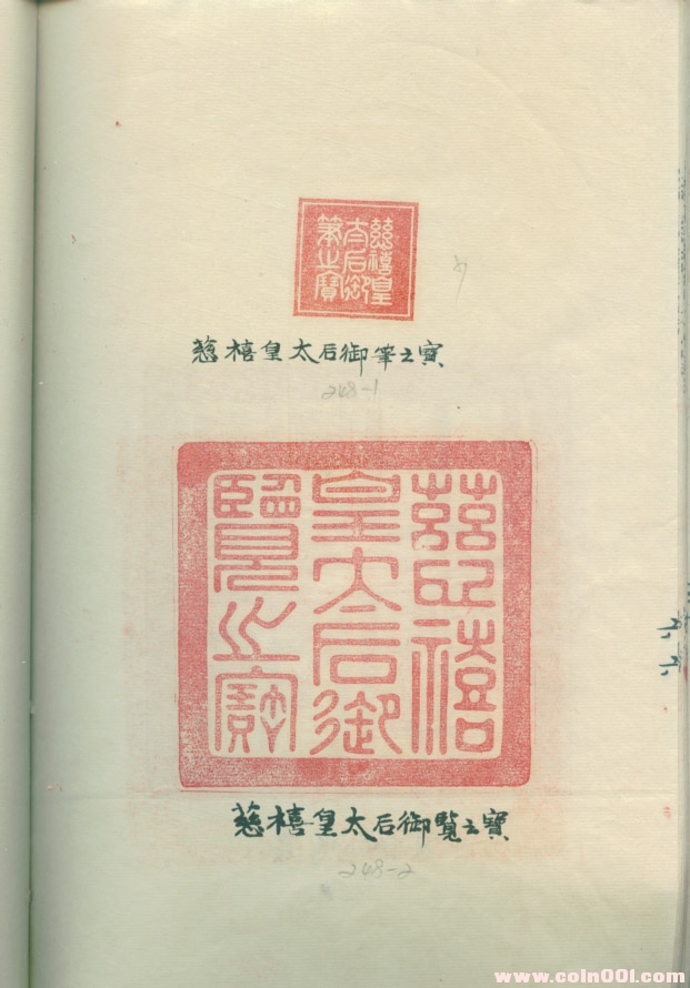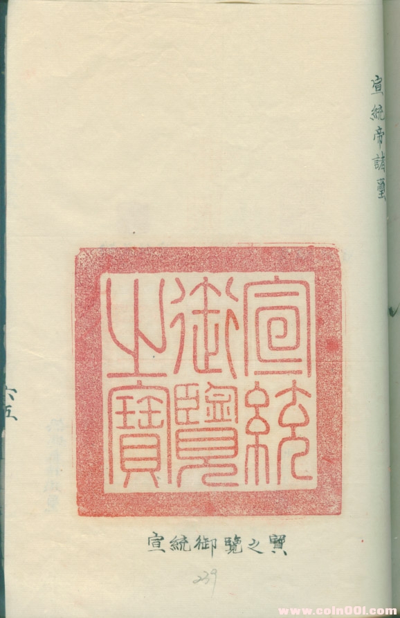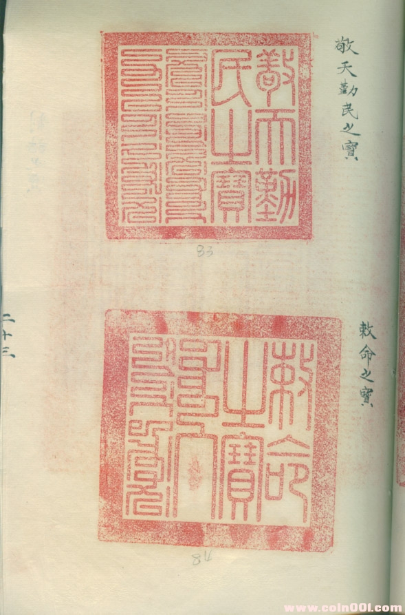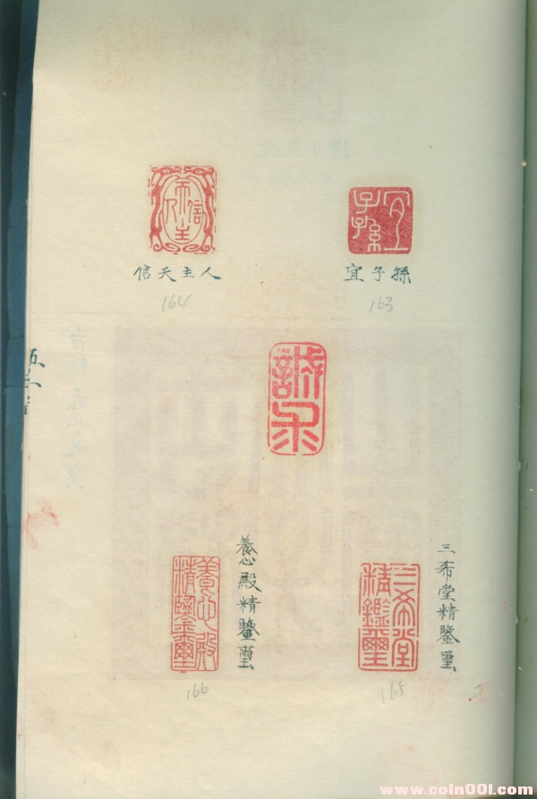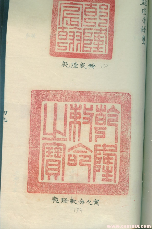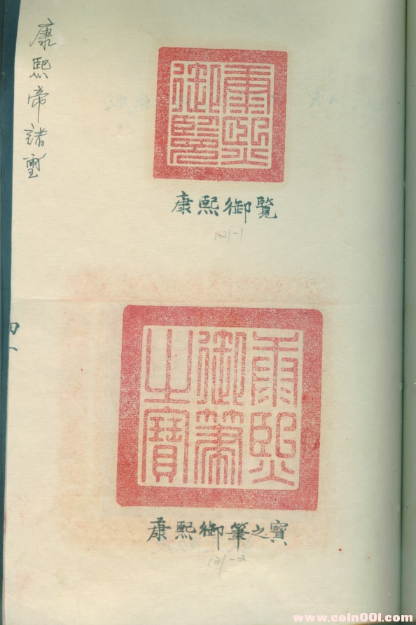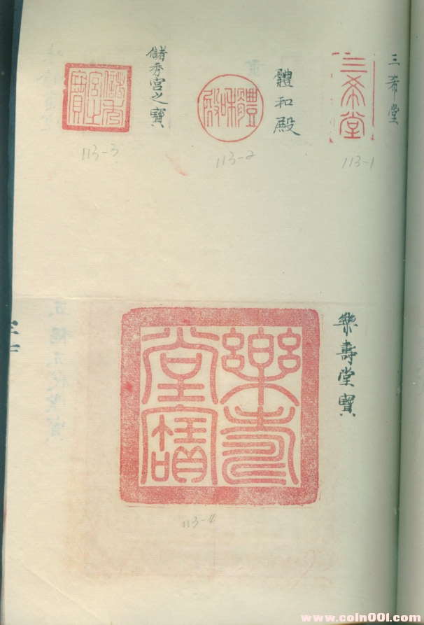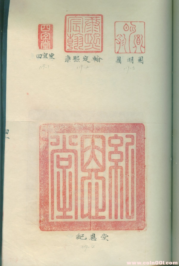 全印譜內(nèi)容為明清帝后寶璽。其分類如下: 明代國寶璽印 55 枚; 道錄青詞鈐印諸璽 25 枚; 清代寶璽 37 枚; 宮殿名璽 40 枚; 康熙諸璽 24 枚; 雍正諸璽 25 枚; 乾隆諸璽 40 枚; 嘉慶諸璽 33 枚; 道光諸璽 9 枚; 咸豐諸璽 11 枚; 同治諸璽 10 枚; 光緒諸璽 7 枚 ;宣統(tǒng)諸璽 6 枚; 皇后嬪妃諸印 37 枚; 共計 359 個印文。其中著名的“清二十五寶”全部涵蓋,所鈐印與故宮博物院網(wǎng)上公布的尺寸一樣,均為明清帝后寶璽原鈐。另印鑒下均有手書文字釋文。毛筆小楷,字跡雅致,剛勁有力,十分罕見,具有非常重要的收藏價值。是研究書畫、印鑒的朋友們應(yīng)該特別關(guān)注的精品。
