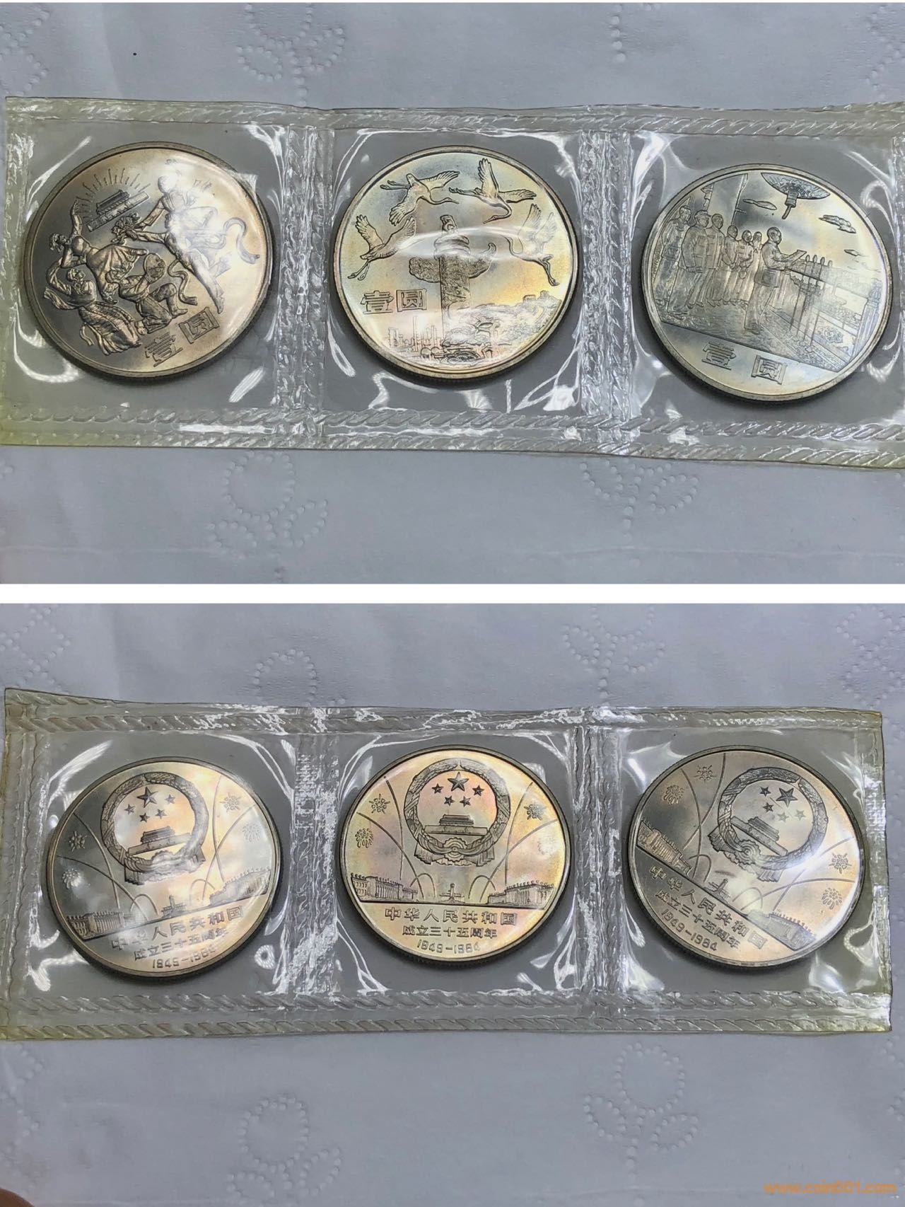 最近現代拍賣出現一套建國35周年半精制塑封裝,為一套三枚塑封包裝,包裝方式與老西藏直角邊的塑封包裝方式非常相似。以往拍賣的半精制要么卡冊加塑料盒,要么塑料盒,那這次出現的半精制是真的嗎?這種包裝方式是否意味著也會有很多數量相同包裝的幣?