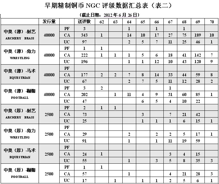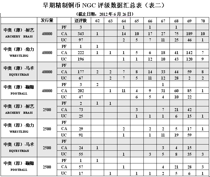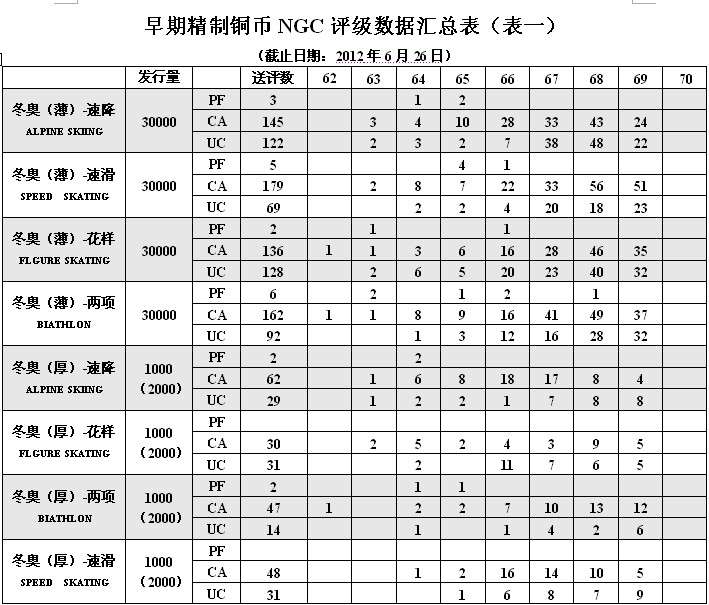 從今天起,我將統計匯總NGC早期精制銅幣(包括冬奧、中奧、銅足、銅貓)的評級數據情況,并在網站上發布,希望能夠對喜愛這些銅幣的朋友帶來一點點幫助。