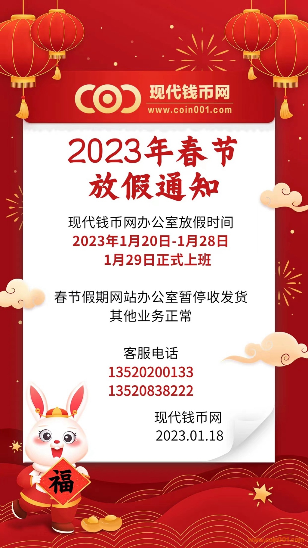 2023年春節放假通知