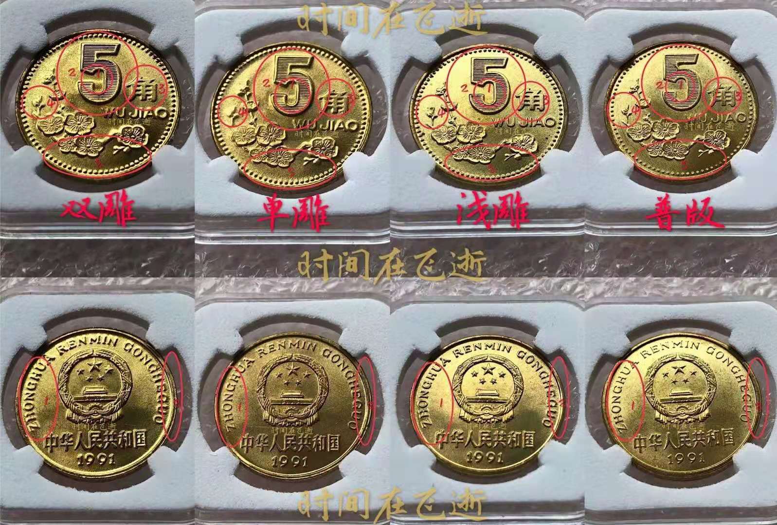 十年間隨著參與人數的增多,梅花盒貨價格也漸漸的水漲船高。本人也開始越發擔心風險的增加,通過對比發現,早期年份還是不錯的選擇,唯一需要關注的就是有無氧化,于是從17年開始 本人開始有意識的關注91梅花盒,感覺91應屬于價格洼地,原因有二,一是首發年份。二是流通91已經很貴,但卷盒卻相對便宜,全新卷拆幣一直不足流通幣的一倍。所以從那時起開始有意識的買入91盒貨。由于早期原盒貨很多存在氧化問題,本人也無有效鑒別方法,只能隨機拆盒拆卷,買的多了,拆的多了,手里的散幣也多了起來。于是賣給一些朋友,玩梅花的朋友都知道,頭幾年的梅花是有機雕、手雕之分的,但是在一次發貨的過程中發現了有一個不同于機雕版與手雕版的版本,當時感覺這應該是不屬于手雕范疇,應單獨命名,所以當時暫命名中版(過渡版),由于當時拆盒的主要以92年封簽的盒貨為主,所以今年開始轉向對91年封簽盒貨的拆卷對比,感覺這樣才更全面,更有說服力,于是真的有了新的收獲。