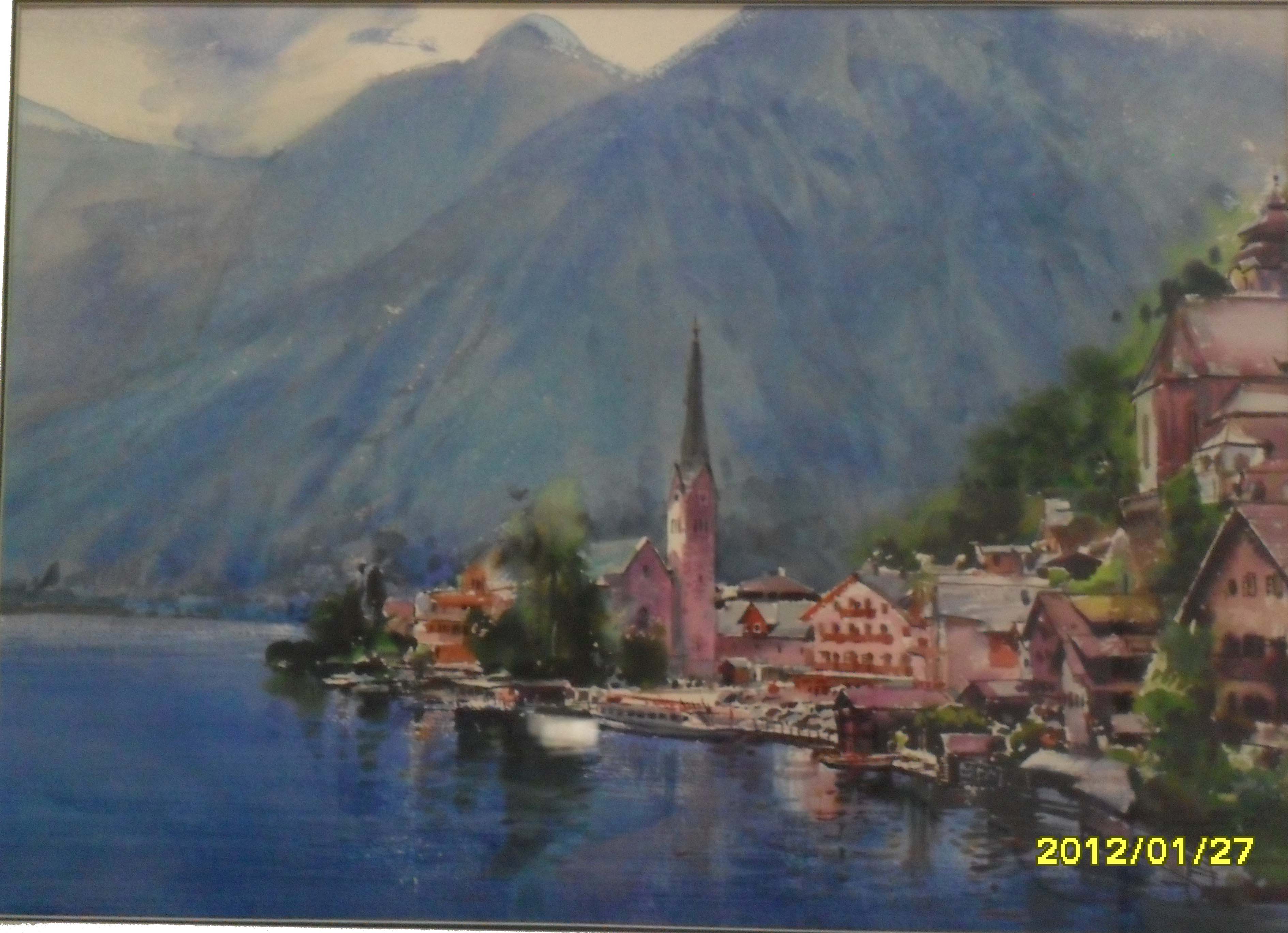 該副作品是2011年所作,描繪的是奧地利的旅游勝地沃爾斯堡,此地乃是音樂大師莫扎特的故鄉,出過很多音樂& 藝術方面的大家。據畫家本人介紹此副作品參加過多次畫展,之所以相中此畫,覺得所畫美景令人神往,看了之后有如畫中平靜的湖面,內心平靜如水,當即決定購入放在客廳。諸位見笑,呵呵!樓上兄眼神真準