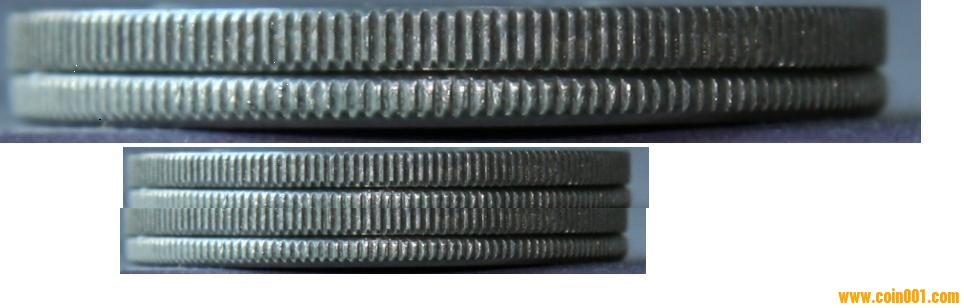 在壓制時胚餅受力后力向周邊的傳導不會完全均勻,銅鎳合金又不能無限量的提高沖壓力,直齒的均勻度存在不足,后期(1990年后)可能使用了新的工藝或者是使用了新的材質(硬度、脆度等都有很大的差別)的緣故,總之解決了直齒的均勻度問題。