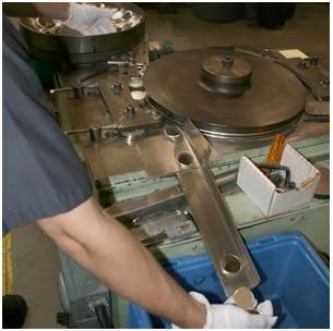 如果是精制幣的坯餅,經過光邊工序加工的幣邊有利于在精制幣的幣圈和幣邊的交界處形成角度更加尖銳、棱角更加分明的夾角。理想情況下這應該是一個90度夾角,而沒有多余的金屬形成卷邊。 ![]() 光邊機(也稱為幣圈加工機)近景 [ 此帖被fwang2450在2014-05-15 05:05重新編輯 ]