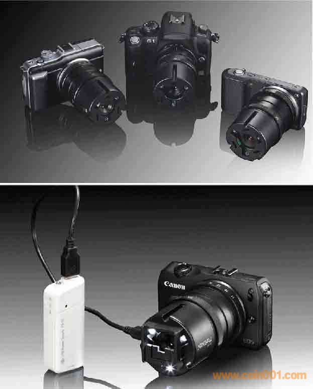 而是越遠越好,以便有充分的照明(也可以避免將照相機鏡頭留在圖片上)。要拉開和錢幣的距離,但又要拍出錢幣的細節,就要求使用長焦微距鏡頭。Mark Goodman 建議使用焦距為80-150mm的長焦微距鏡頭,這樣可留出充分的余地配置光源。