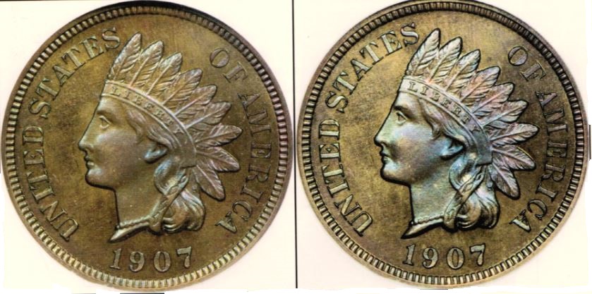 錢幣的對比度(可理解為亮度):低對比度 - 流通幣,深色銅幣。