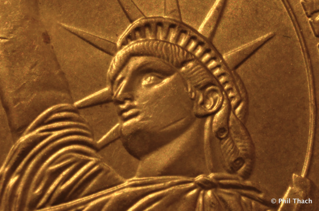 Mark Goodman注重的是錢幣照片的審美感覺,也就是在照片中盡量反映出錢幣的神韻,因此對用光、色彩、對比度都很有講究。另一方面,錢幣微觀研究也需要錢幣細部的高清照片。沒有高清錢幣圖像,錢幣的微觀研究就無從談起。對于這類照片,清晰度是必須的,但是色彩和對比度等就相對次要。在拍攝這類照片時,相機和錢幣的距離、燈光角度等就不必受Mark Goodman說法的限制。Mark Goodman對這類微距攝影著墨不多,我在帖子的最后部分介紹了取自其它來源的資料。