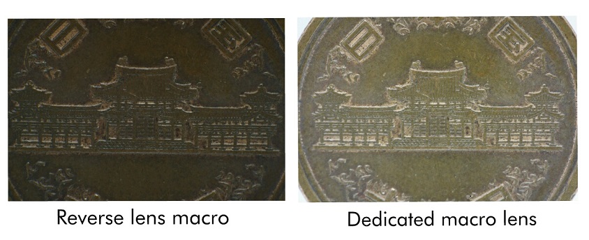 還有一種情況,是使用大光圈拍攝時,相機的景深非常淺。如果相機和錢幣不完全平行,錢幣對焦點以外的部分可能會模糊。因此雖說應該盡量加大光圈以提高快門速度,但也應兼顧到景深和清晰度。