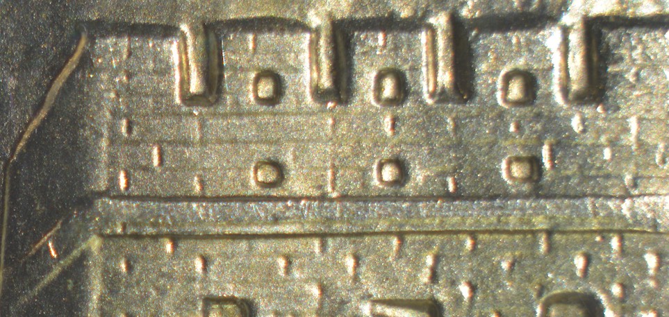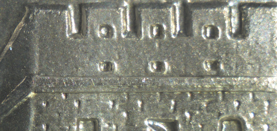 按照正常造幣原理來說,墻磚銜接縫在工作模上是凸起的,壓印到坯餅上產生了凹陷效果,那么這些出現在“無磚”版801上面的墻磚銜接縫痕跡是否表明“無磚”版801的工作模是來自于“有磚”版801工作模修模結果?