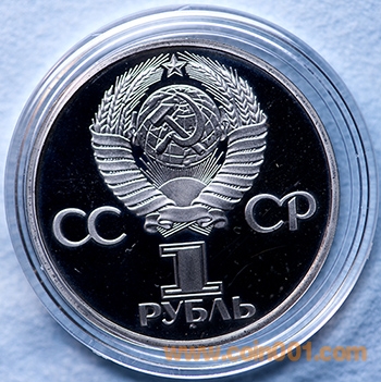 正面:國徽,周圍是50年,蘇維埃,政權(quán)字樣.意為10月革命勝利50周年或蘇維埃建政50年.底下是1盧布,和第一枚同樣,1沒用阿拉伯?dāng)?shù)字,也找不到發(fā)行年份.不過此幣是成套發(fā)行,在小面額幣上有1917-1967字樣.
