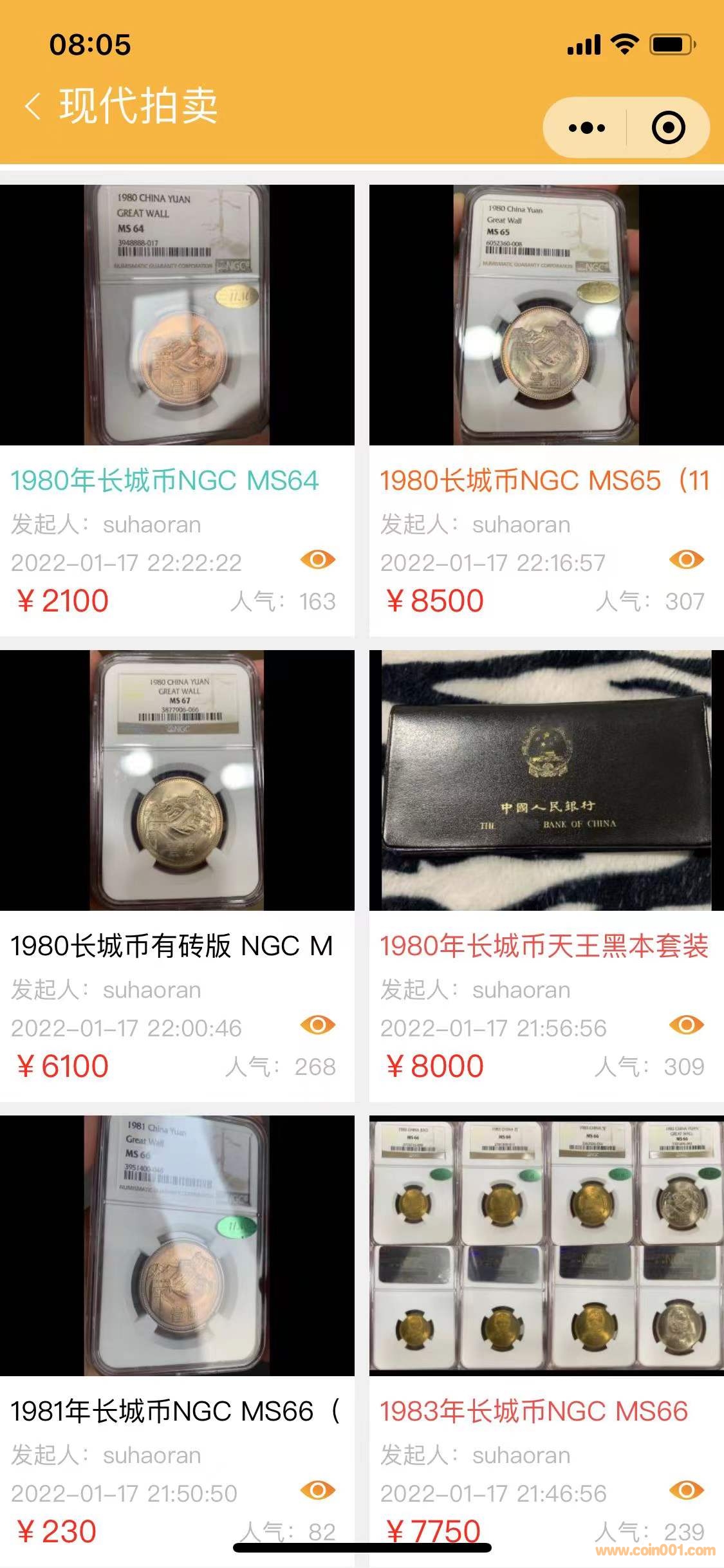 評級普通(精制)紀念幣交易