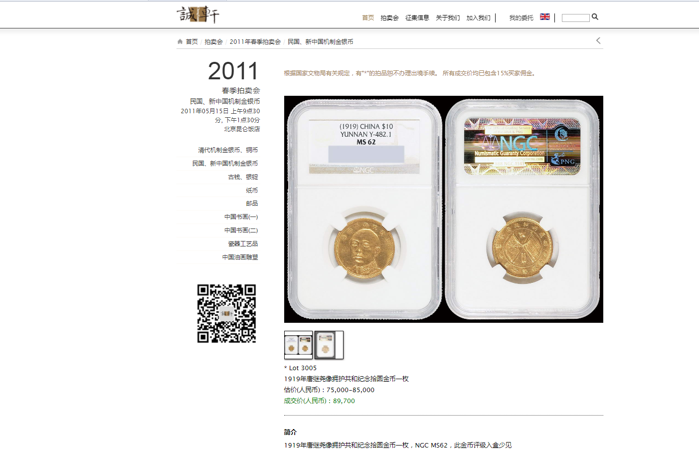 好久沒有看到唐繼堯在線下拍賣啦,看到此次安徽鄧通2020秋拍20萬左右成交的唐繼堯金幣不免感慨良多。記得2011誠軒秋拍,一枚NGC62唐繼堯拾元金幣當時也是搶得熱火朝天,最終以近9萬元成交。那個時候我侄女在事業單位上班,一個月拿900多塊,我把這個成交價給她看,她當時心情就不好了,立馬就開始懷疑人生,這可是相當她十年的工資收入。之后整個錢幣市場經歷了一場滑鐵盧,很多很好的品種都被量貨連累,價格普遍被腰折(也不管合不合理),直到2018年前后唐繼堯金幣價格都沒有超過2011年的行價,想想我們的小唐放個7、8年連銀行儲蓄的利潤都跑不贏,會不會到玉帝那去告狀:反對不正當打壓小唐及其它被連累的兄弟?安徽鄧通2020秋拍小唐以20萬左右成交總算揚眉吐氣了一次,但說真心話,比較下2020年和2011年的物價通脹水平,這個價我還真不認為高:2011年誠軒成交的那枚NGC62的拾元唐金按我國目前平均10%的物價通脹水平來算假如現在送拍以18萬左右成交,除去傭金,可能還真沒跑贏通脹。無論是金拾小唐還是金伍小唐都不過幾百個兄弟,63分的好品更是難得一見。正可謂且看且珍惜,一路走好,小唐。