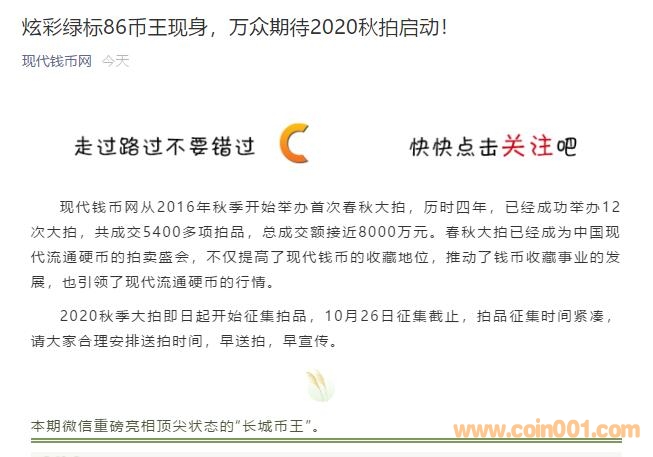 現(xiàn)代錢幣網(wǎng)2020秋季大拍開始征集拍品本帖被 廣天藏品 執(zhí)行加亮操作(2020-09-10)