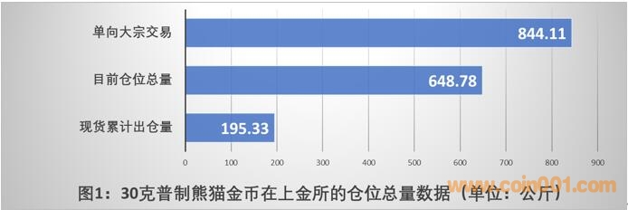 ????????如圖1所示,自2018年9月12日起,30克普制熊貓金幣共計入倉總量844.11公斤,累計提貨出倉量195.33公斤,目前的倉位總量648.78公斤,出倉率23.14%。