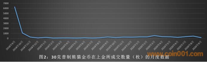 ??????2.兩年來,30克普制熊貓金幣在上金所進行交易的月度變化數(shù)據(jù)分別見圖2和圖3。