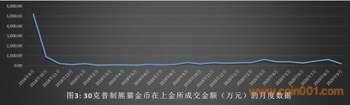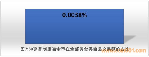 ??????圖7所示,在這一期間內(nèi),30克普制熊貓金幣的交易總金額在該所全部黃金類商品交易中的占比為0.0038%。